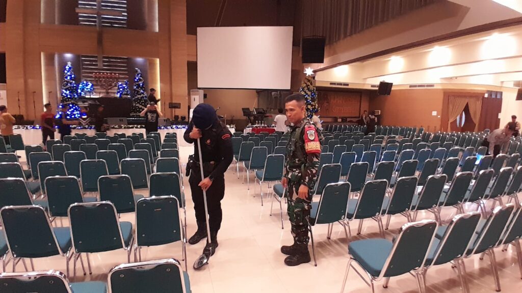 Kota Cirebon, (Rabu, 24/12/2025), – Dalam rangka menjaga keamanan dan ketertiban masyarakat menjelang perayaan Natal Tahun 2025, Babinsa Kelurahan Lemahwungkuk Sertu Mu’ammar bersama Bhabinkamtibmas Kelurahan Lemahwungkuk melaksanakan monitoring kegiatan sterilisasi dan pengecekan keamanan gereja.