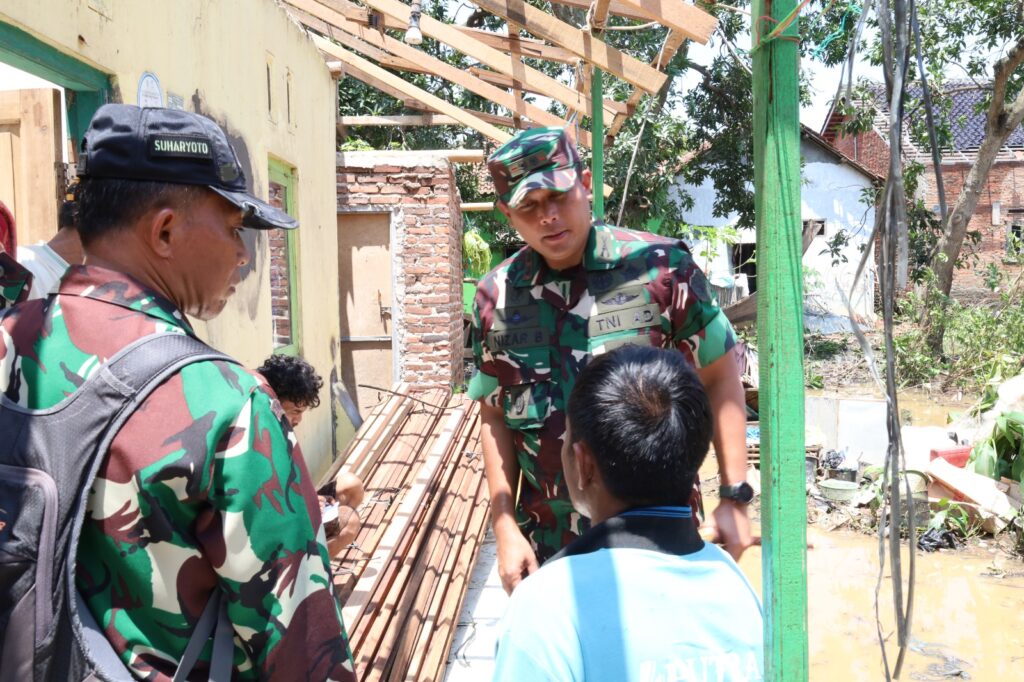 Cirebon,12 Maret 2026 Komandan Kodim 0620/Kabupaten Cirebon Letkol Inf Nizar Bachtiar, S.H., M.I.P., meninjau langsung lokasi bencana alam angin puting beliung yang melanda Desa Muara, Kecamatan Suranenggala dan Desa Mertasinga, Kecamatan Gunung Jati, Kabupaten Cirebon.