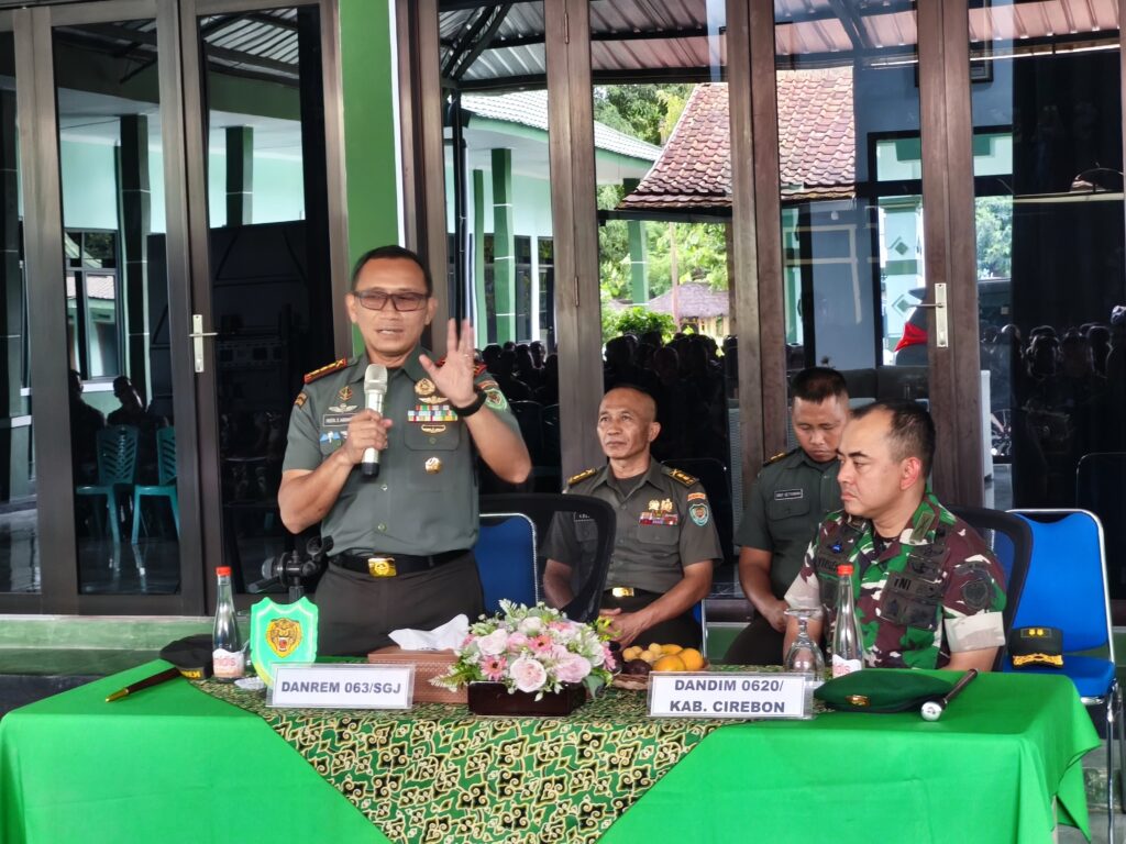 Cirebon, 25 November 2025 – Komandan Korem (Danrem) 063/Sunan Gunung Jati, Kolonel Inf Hista Soleh Harahap, S.I.P., M.I.P., M.Han, melaksanakan kunjungan kerja ke Kodim 0620/Kabupaten Cirebon pada Senin (25/11). Kehadiran Danrem didampingi Kastel dan Kasiops Rem 063/SGJ, dan disambut langsung oleh Dandim 0620/Kab. Cirebon Letkol Inf M. Yusron, S.A.P, beserta seluruh jajaran. Kegiatan berlangsung di Makodim 0620/Kab. Cirebon, Jl. Fatahillah, Sumber, Kabupaten Cirebon.