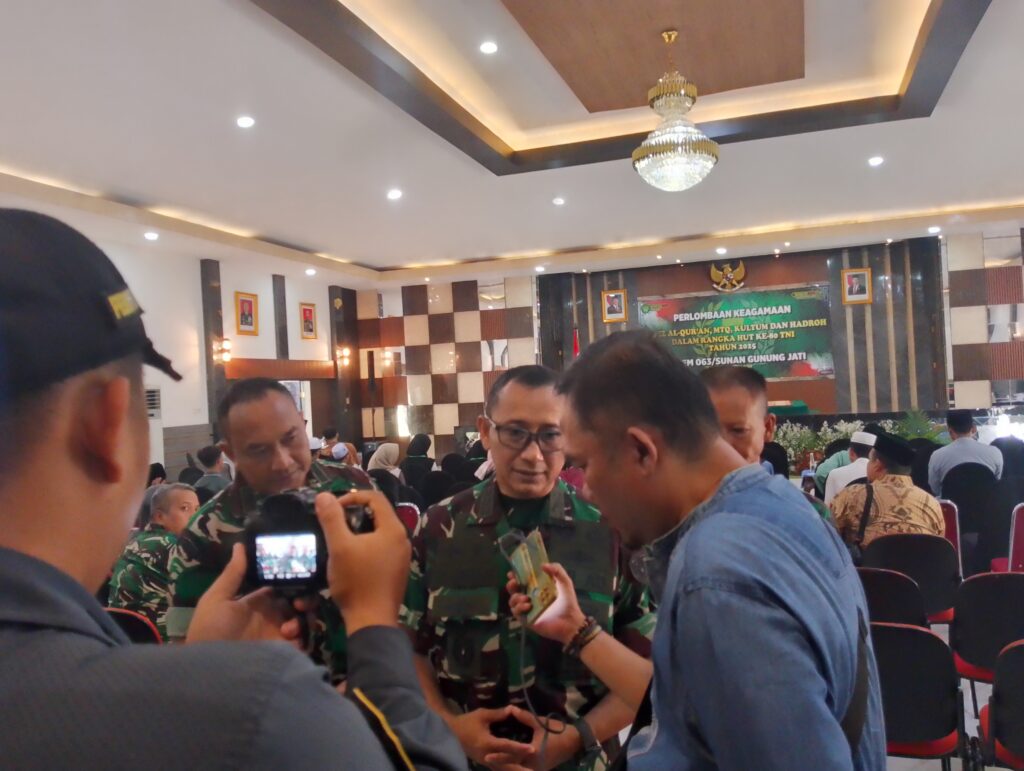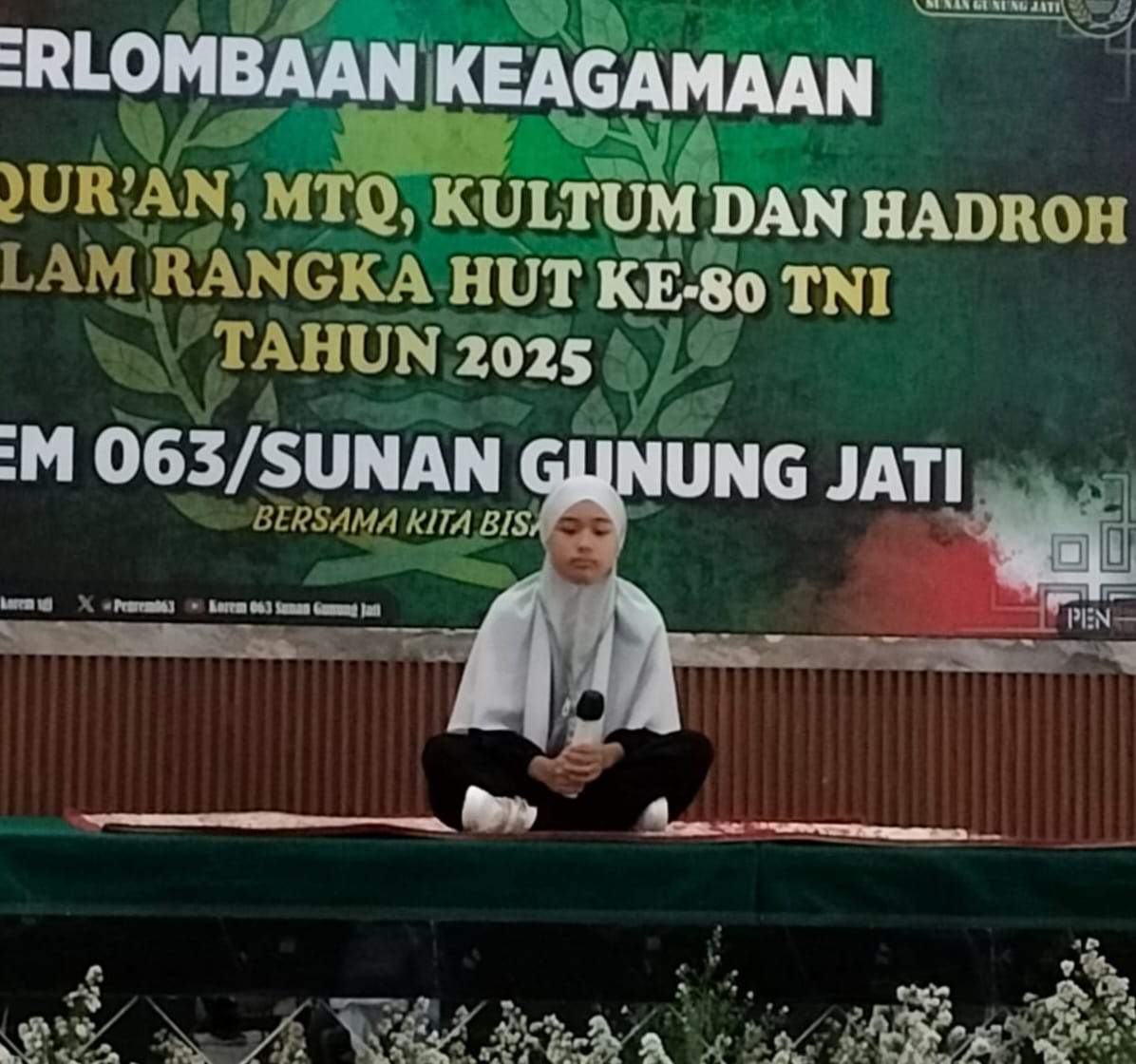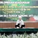 Pendim, Kota Cirebon, (Jum’at, 26/9/2025), – Dalam rangka memperingati Hari Ulang Tahun (HUT) ke-80 Tentara Nasional Indonesia (TNI) tahun 2025, Makorem 063/Sunan Gunung Jati (SGJ) menggelar perlombaan keagamaan yang meliputi Hafiz Al-Qur’an, Musabaqah Tilawatil Qur’an (MTQ), Kultum, dan Hadroh. Kegiatan tersebut berlangsung di Aula Sunan Gunung Jati Makorem 063/SGJ, Jl. Brigjen Dharsono By Pass, Kelurahan Sunyaragi, Kecamatan Kesambi, Kota Cirebon.