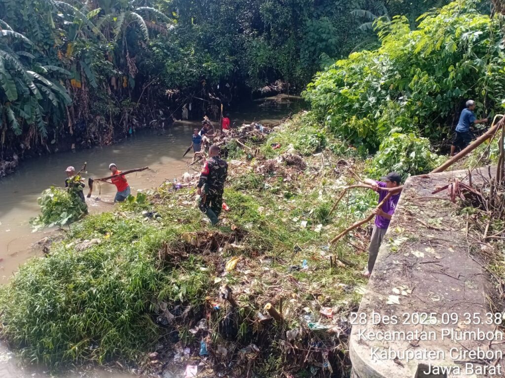 Cirebon – Kodim 0620/Kabupaten Cirebon melaksanakan kegiatan Karya Bakti pembersihan saluran irigasi Bendung Caplek/Kali Tamiyang/Sungai Condong, bertempat di Desa Bodesari, Kecamatan Plumbon, Kabupaten Cirebon, Minggu (28/12/2025).
