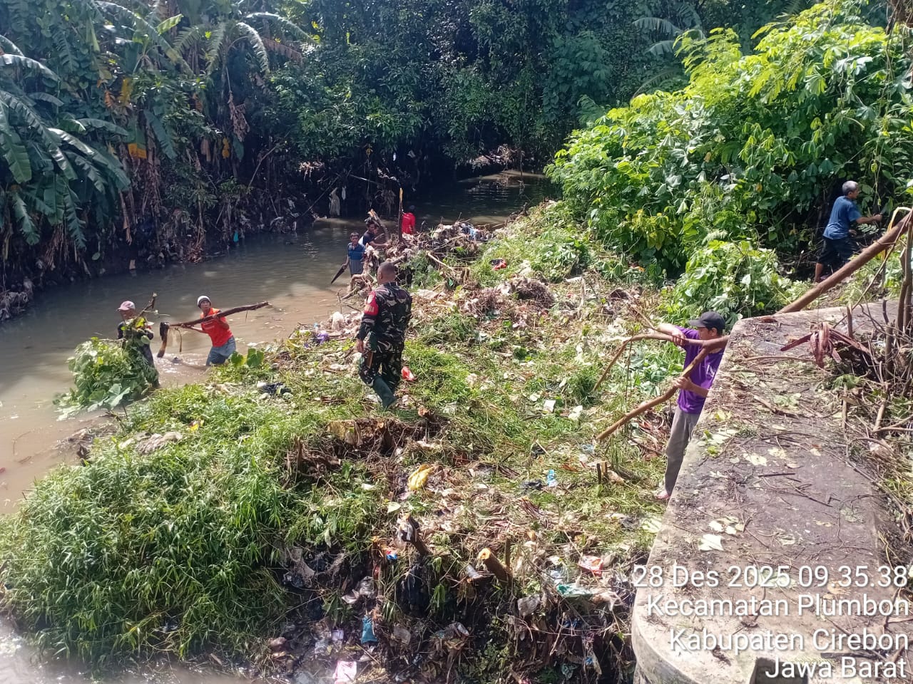 “Hari ini kita melaksanakan Karya Bakti di dua lokasi, salah satunya di sini dan juga di wilayah Gunung Jati. Kegiatan ini sebagai upaya bersama untuk mencegah banjir serta memperkuat kemanunggalan TNI dengan rakyat,” ujar Dandim.