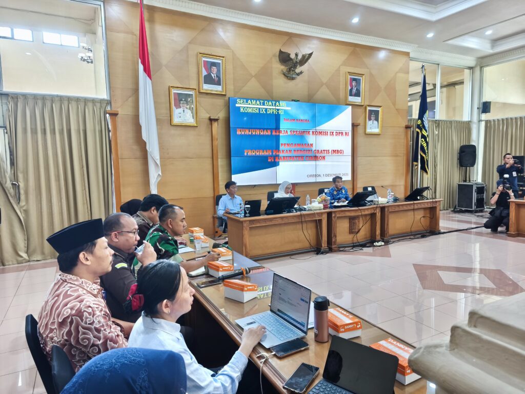 Cirebon – Komandan Kodim 0620/Kabupaten Cirebon, Letkol Inf Mukhammad Yusron, S.A.P, menghadiri rapat kunjungan kerja spesifik Komisi IX DPR RI yang digelar dalam rangka pengawasan dan evaluasi pelaksanaan Program Makan Bergizi Gratis (MBG) di wilayah Kabupaten Cirebon, Senin 1 Desember 2025.