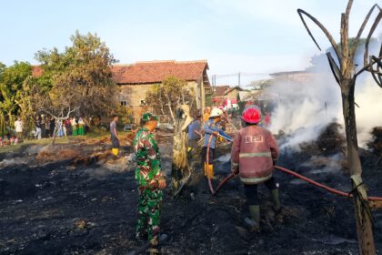 Weru, 25 September 2025 , Babinsa Desa Karangsari Serka Sucipto dari Ramil 0620-14/Weru melakukan monitoring sekaligus pengamanan atas kejadian kebakaran yang terjadi di Gudang Limbah Serut Rotan Owol...