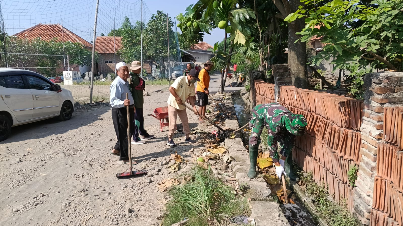 - Koramil 0620-14/Weru melaksanakan pembersihan saluran air di Blok Kebon Gede RT 07/02, Desa Gamel, Kecamatan Plered. Sasaran kegiatan ini adalah mengangkat sampah dan endapan lumpur yang menyumbat drainase guna memperlancar aliran air dan mencegah genangan saat hujan turun.